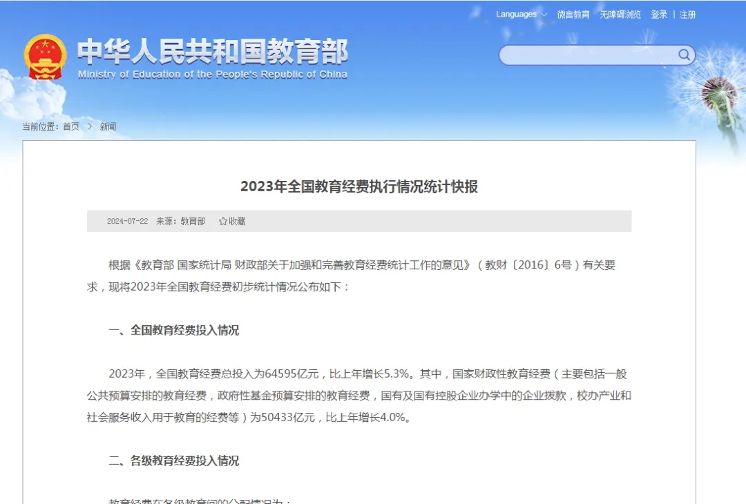 7月22日,教育部公布2023年全國(guó)教育經(jīng)費(fèi)執(zhí)行情況統(tǒng)計(jì)快報(bào)。