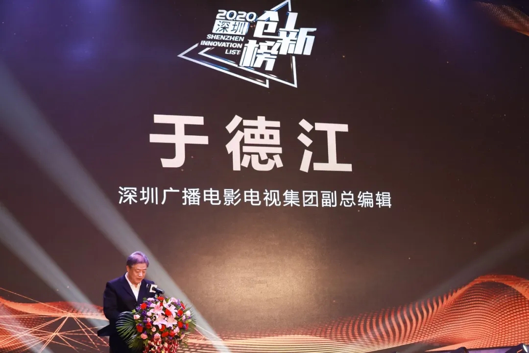 頒獎盛典上,深圳廣播電影電視集團副總編輯于德江對深圳今年的經濟環(huán)境和科技發(fā)展做了精煉的解讀和分析,賴群陽書記為大家分享了深圳這座經濟發(fā)展奇跡之城背后的創(chuàng)新力量與40年間的不朽成績單,也對創(chuàng)新榜上榜企業(yè)的逆勢發(fā)展和科技創(chuàng)新表達肯定與贊可。