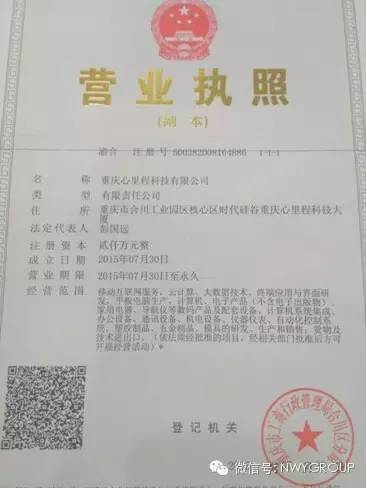 2015年7月30日,重慶心里程科技有限公司在重慶市合川區(qū)成功注冊(cè),落戶(hù)地址位于由廣東心里程電子集團(tuán)有限公司全資購(gòu)買(mǎi)的重慶市合川工業(yè)園區(qū)核心區(qū)時(shí)代硅谷重慶心里程科技大廈,標(biāo)志著廣東心里程電子集團(tuán)有限公司投資10億元戰(zhàn)略布局大陸西南區(qū)域總部投資拉開(kāi)了序幕。