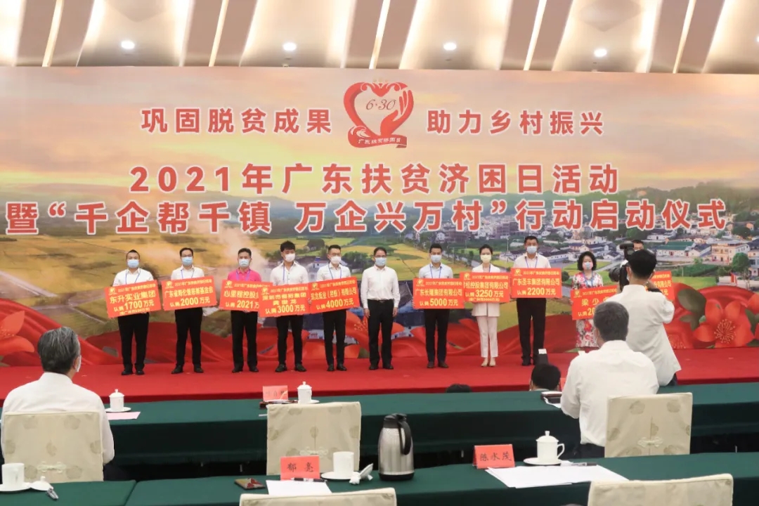 6月30日,2021年廣東扶貧濟(jì)困日活動(dòng)暨“千企幫千鎮(zhèn)、萬企興萬村”行動(dòng)啟動(dòng)儀式在廣州舉行。省長馬興瑞,省委常委葉貞琴,省政府秘書長、辦公廳主任葉牛平等領(lǐng)導(dǎo)出席活動(dòng),心里程投資集團(tuán)董事長彭俏奇受邀參加活動(dòng),并代表集團(tuán)上臺(tái)舉牌認(rèn)捐2021萬元,積極響應(yīng)“千企幫千鎮(zhèn)、萬企興萬村”行動(dòng)號(hào)召,繼續(xù)助力廣東鞏固拓展脫貧攻堅(jiān)成果,推動(dòng)鄉(xiāng)村全面振興。