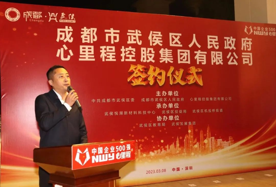 3月8日,心里程集團聯(lián)合中共成都市武侯區(qū)委、成都市武侯區(qū)人民政府,在深圳舉辦“成都市武侯區(qū)人民政府與心里程控股集團有限公司戰(zhàn)略合作簽約儀式”。