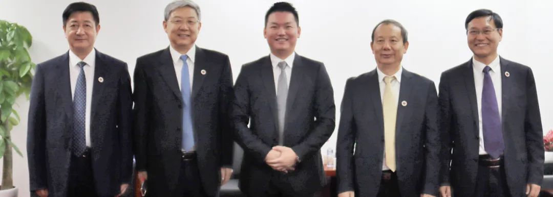李永華副校長(左一)、李清泉書記(左二)、彭國遠董事長(左三)、毛軍發(fā)校長(左四)、張學記副校長(左五)合影
