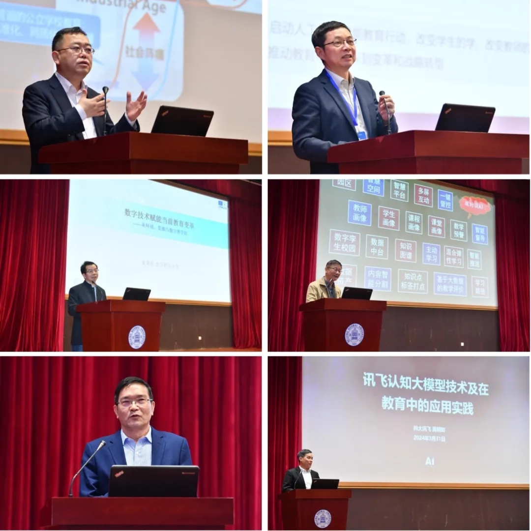 隨后,中國教育科學(xué)研究院院長李永智,武漢理工大學(xué)校長、教育部教育數(shù)字化專家咨詢委員會主任楊宗凱教授,北京師范大學(xué)智慧學(xué)習(xí)研究院院長、互聯(lián)網(wǎng)教育智能技術(shù)及應(yīng)用國家工程實驗室主任黃榮懷教授,大灣區(qū)大學(xué)李曉明教授,清華大學(xué)深圳國際研究生院信數(shù)中心技術(shù)總監(jiān)、《現(xiàn)代教育技術(shù)》主編鐘曉流,科大訊飛總裁吳曉如分別以“以數(shù)字化開辟教育發(fā)展新賽道”“數(shù)字教育創(chuàng)新發(fā)展的路徑與實踐”“數(shù)字技術(shù)賦能當(dāng)前教育變革——從環(huán)境、資源到數(shù)字教學(xué)法勢”“AI如何+教育?”“新一代信息技術(shù):推動教育變革的新質(zhì)生產(chǎn)力——清華大學(xué)深圳國際研究生院(SIGS)智慧校園建設(shè)的探索與實踐”“自主可控認知大模型技術(shù)研發(fā)進展及其教育應(yīng)用”為題,做了主題報告。報告內(nèi)容精彩紛呈,引起與會者深度思考、熱烈討論。