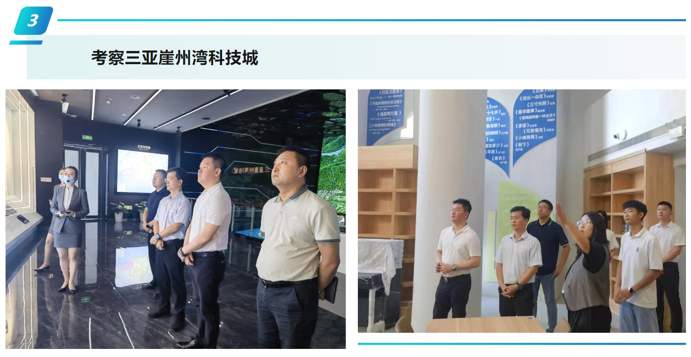 8月5日,杜登高副董事長帶隊(duì)到三亞市崖州區(qū)考察,先后實(shí)地調(diào)研了崖州區(qū)水南小學(xué)、三亞崖州灣科技城寰島實(shí)驗(yàn)中學(xué)、瓊粵科技合作城南繁種業(yè)、健康雙創(chuàng)產(chǎn)業(yè)園等地。