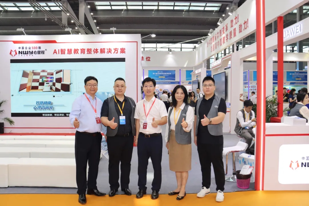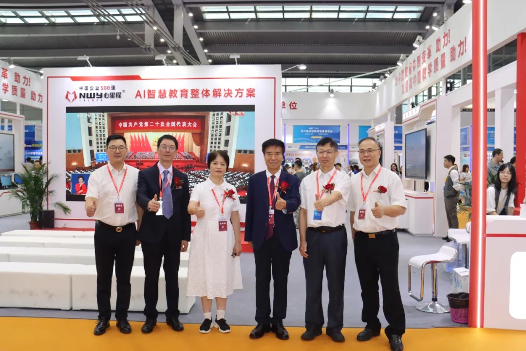 四川省教育裝備行業(yè)協(xié)會(huì)會(huì)長張林祥(左三)蒞臨心里程展位參觀指導(dǎo)