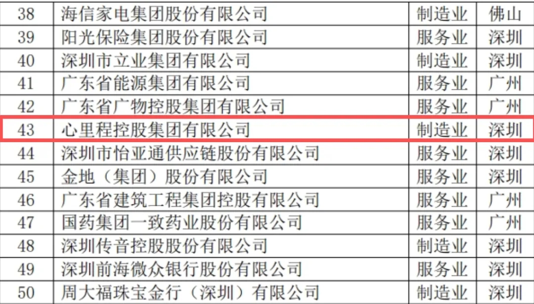 心里程集團榮登“2025廣東企業(yè)500強”榜單第43位