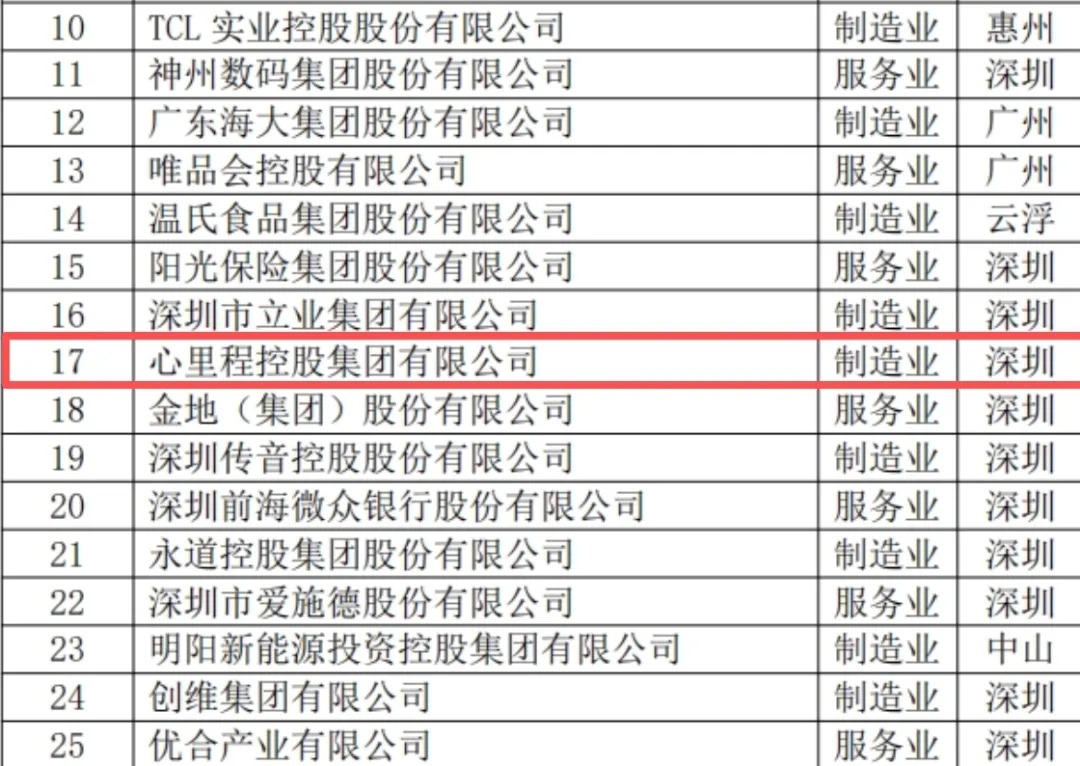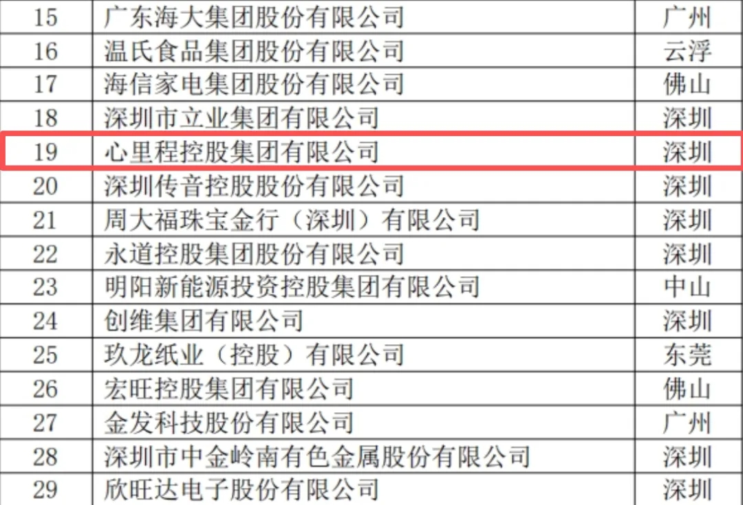 心里程集團榮登“廣東民營企業(yè)100強”榜單第17位