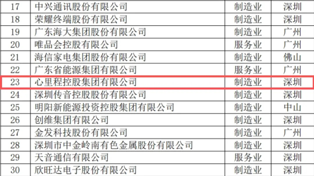 心里程集團榮登“廣東創(chuàng)新企業(yè)100強”榜單第23位