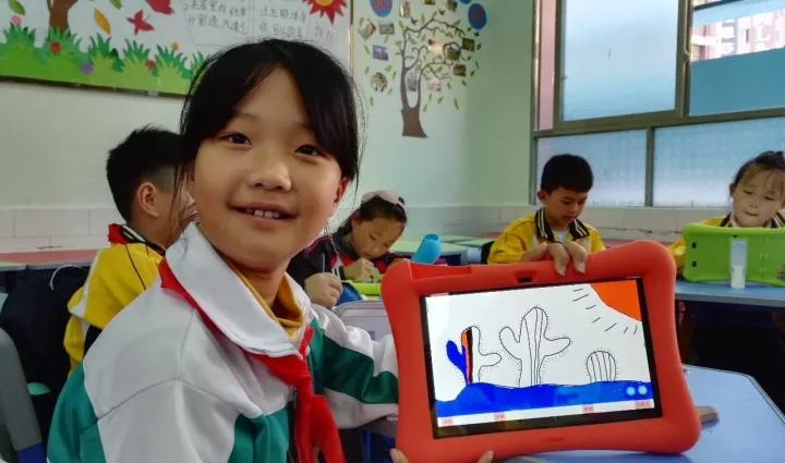 ▲學生應(yīng)用心里程“智慧教育專用平板電腦”進行創(chuàng)作