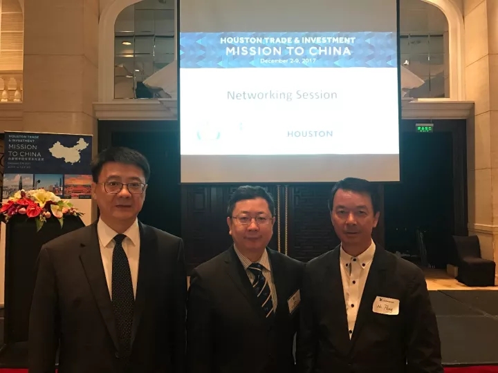 左起:深圳市貿(mào)易促進(jìn)委員會(huì)部長(zhǎng)劉星、中國(guó)駐休斯敦副總領(lǐng)事王昱、彭錦環(huán)會(huì)長(zhǎng)