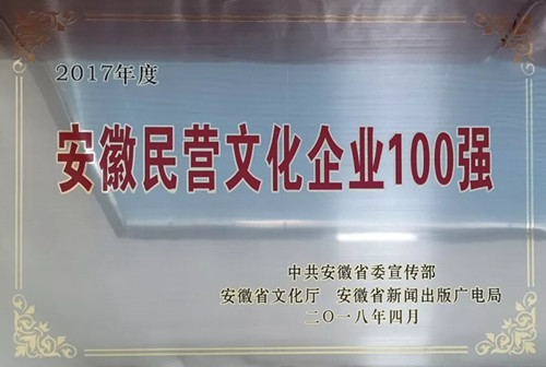 喜訊 | 安徽心里程成功入選“2017年度安徽民營文化企業(yè)100強”