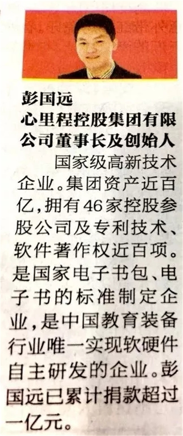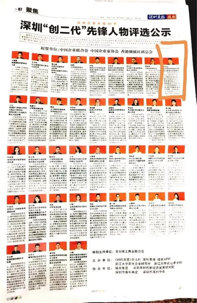 8月31日,深圳商報A7版揭曉公示了深圳“創(chuàng)二代”先鋒人物,心里程控股集團董事長及創(chuàng)始人彭國遠榮耀登榜!