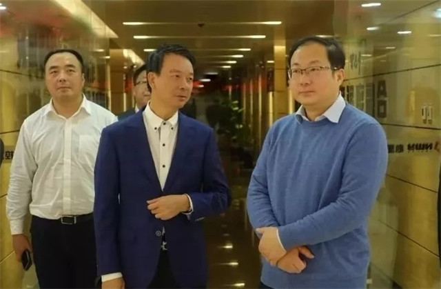 彭錦環(huán)總裁(左一)陪同劉闖書記(右一)參觀心里程集團(tuán)