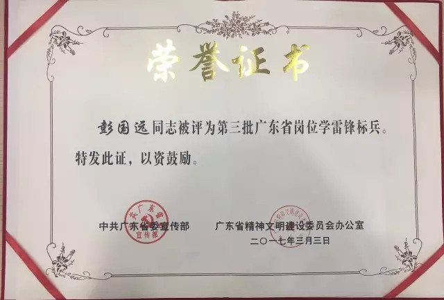 2017年榮獲“廣東學(xué)雷鋒標(biāo)兵”稱號