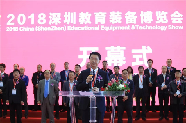 12月26日,由中國教育裝備行業(yè)協(xié)會(huì)、深圳市工商聯(lián)合會(huì)指導(dǎo),廣東省教育裝備中心、深圳市教育局支持,深圳市教育裝備行業(yè)協(xié)會(huì)主辦、深圳華富展覽服務(wù)有限公司承辦的“2018深圳教育裝備博覽會(huì)”在深圳會(huì)展中心隆重開幕。心里程控股集團(tuán)董事長彭國遠(yuǎn)出席開幕式,廣東心里程教育集團(tuán)有限公司總裁、深圳市教育裝備行業(yè)協(xié)會(huì)會(huì)長彭錦環(huán)致開幕辭。