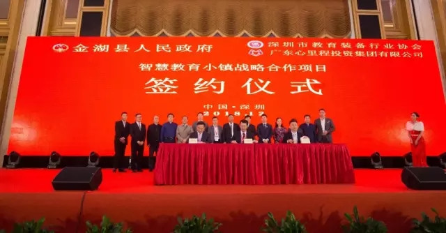 ●2018年12月25日,在互聯(lián)網(wǎng)+教育裝備產(chǎn)業(yè)發(fā)展論壇暨2019深圳教育裝備博覽會啟動儀式上,心里程集團、深圳市教育裝備行業(yè)協(xié)會與江蘇省淮安市金湖縣人民政府舉行了隆重的戰(zhàn)略合作項目簽約儀式。由心里程集團控股70%,江蘇金湖縣人民政府參股30%,聯(lián)合共同打造的全國首個智慧教育小鎮(zhèn)即將落戶金湖!