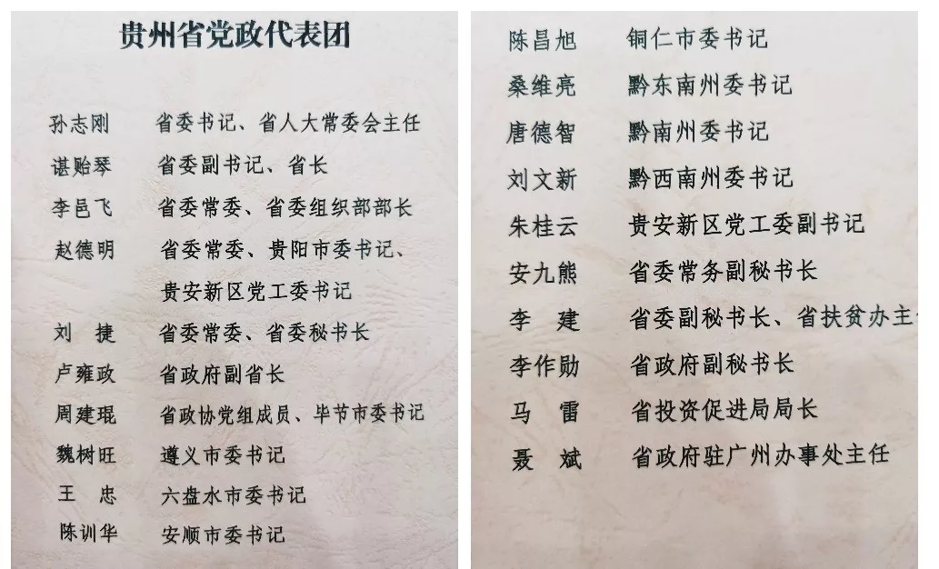 貴州省黨政代表團(tuán)出席活動(dòng)名單