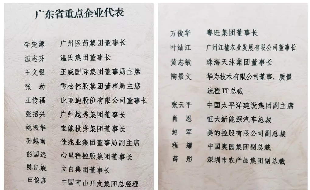 受到貴州省委書(shū)記、省人大常委會(huì)主任孫志剛,廣東省委副書(shū)記、省長(zhǎng)馬興瑞等領(lǐng)導(dǎo)親切接見(jiàn)的廣東省重點(diǎn)企業(yè)代表名單