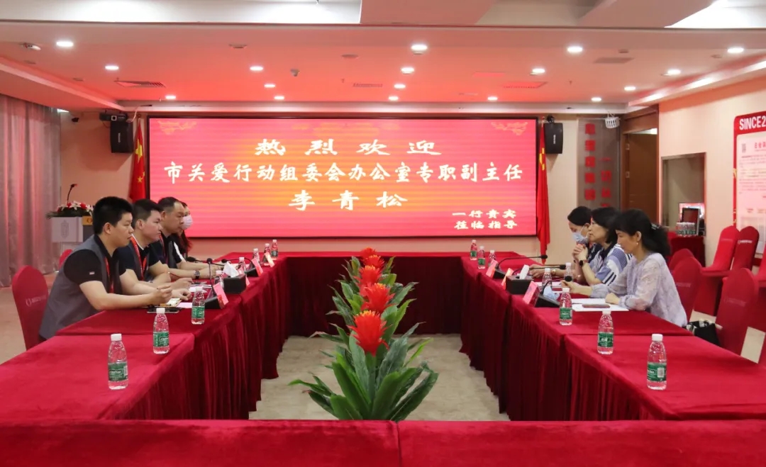 6月2日,深圳市關(guān)愛行動(dòng)組委會(huì)辦公室專職副主任李青松一行領(lǐng)導(dǎo)蒞臨心里程集團(tuán)總部調(diào)研指導(dǎo),心里程控股集團(tuán)董事長彭國遠(yuǎn)熱情接待并陪同座談交流。